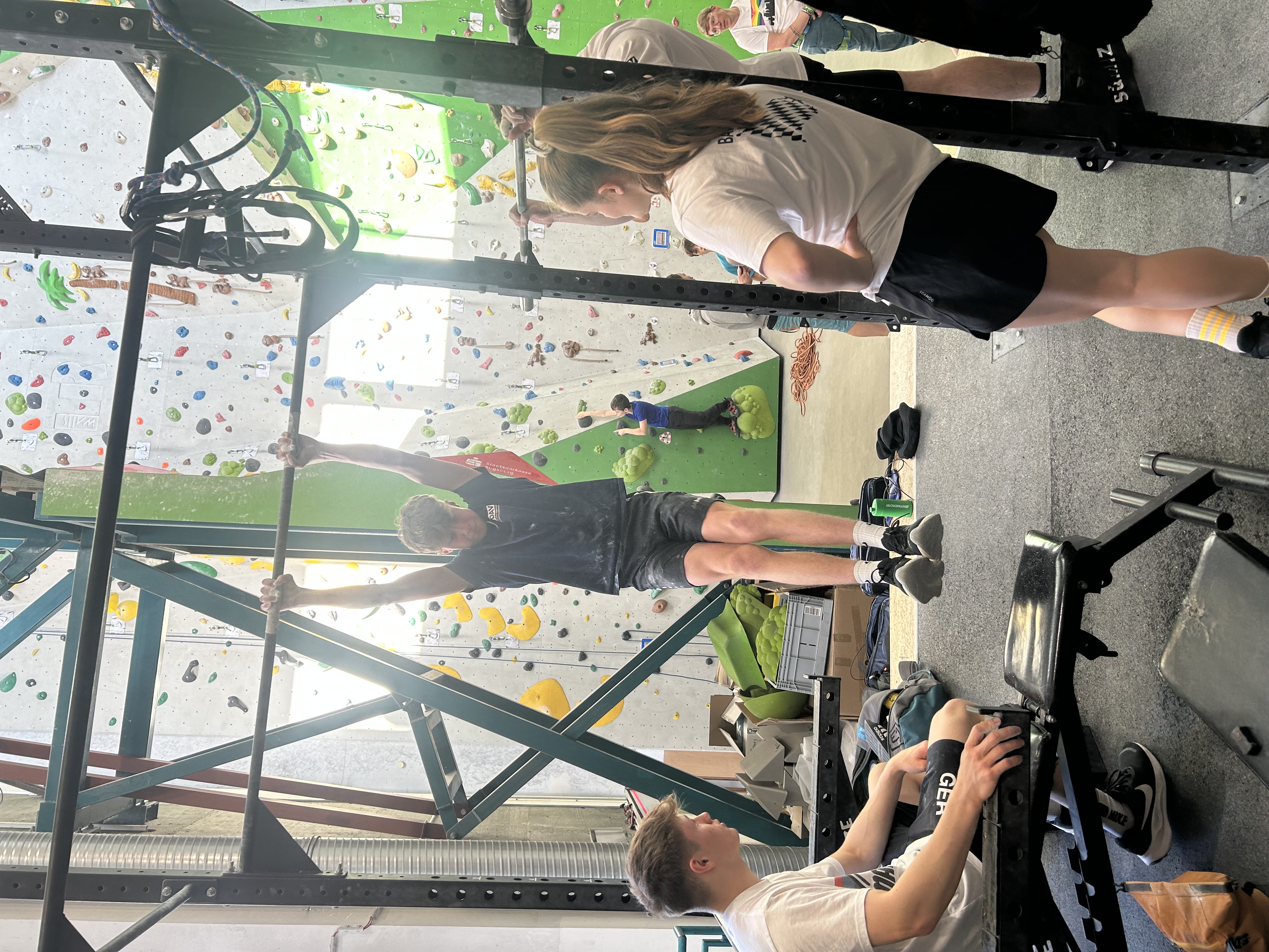 Der Samstag startete ziemlich kühl, mit langen Runs an der Außenwand. Die neuen Griffe bieten zwar guten Grip, sorgen aber auch für ordentlich Schmerzen, wenn man sich mal wieder das Knie anschlägt. Nach der ganzen Beta-Arbeit diesen Winter konnten wir viele Läufe durchziehen und gezielt an unserer Konsistenz arbeiten. Der Nieselregen war dabei nicht immer angenehm, aber mit passenden Pausen drinnen haben wir alles gut überstanden. Am Nachmittag ging es noch an ein paar Feinschliffe, bevor unsere Beine endgültig dichtgemacht haben. Danach wurden beim Vietnamesen erstmal die Batterien wieder aufgeladen. Damit war der erste Tag auch schon vorbei und und es wurde soviel Schlaf wie möglich mitgenommen.